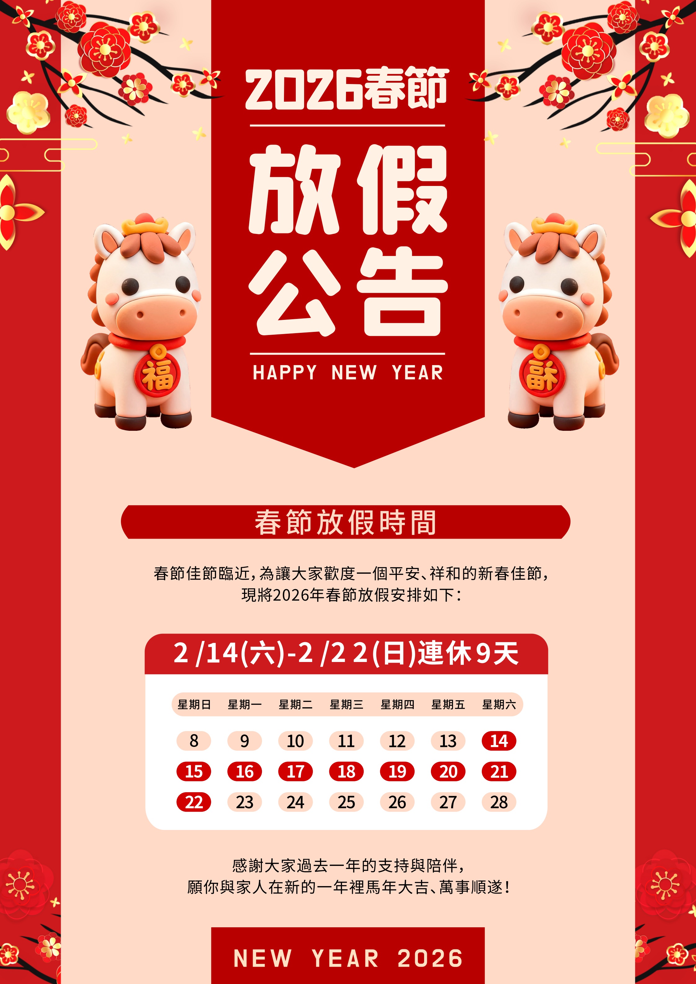 2026黑師傅春節假期延長為02/14(六)至03/01(日)
